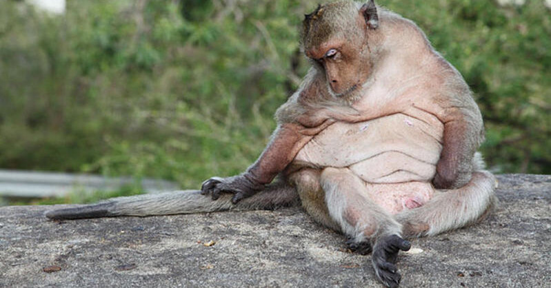 Зовут Годзилла, живу на рынке: обезьяну в два раза толще нормы забрали у хозяина