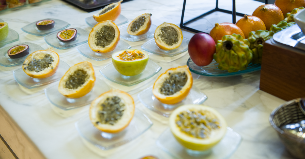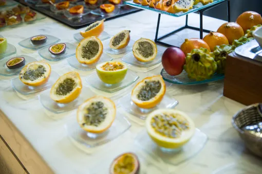 Гости продегустировали как сами фрукты, так и авторское меню, включающее экзотические плоды: разнообразные холодные и горячие закуски, десерты и коктейли, способные удовлетворить самый тонкий вкус. Особого внимания собравшихся заслужили изысканная копчёная утиная грудка с маракуйей на тосте и восхитительный сет десертов, включающий чизкейк с гранадиллой, профитроли с маракуйей и др.