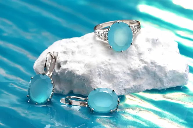 Цвет этих камней можно сравнить с прибрежными водами океана, льдом или даже голубой матча-латте. Попробуйте в пару к украшениям с халцедонами добавить модели с камнями молочных оттенков– белые агаты, нефриты, опалы, жемчуг, перламутр. Пропорции молочного и сине-голубого оттенков выбирайте исключительно на свой вкус.
