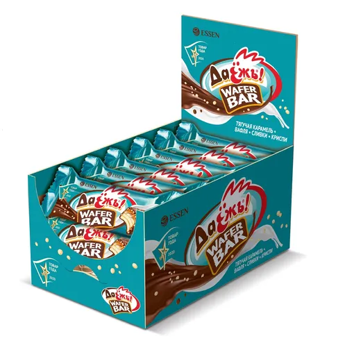 Вторая сладость, получившая «Товар Года», – «ДаЁжъ!». Это укрупненная вафельная конфета с узнаваемой «колючей» поверхностью, обсыпанная хрустящими шариками криспи, в индивидуальной упаковке. Фишка «ДаЁжъ!» в том, что хотя она и имеет обильную карамельную заливку, вафля остается хрустящей. Этого удалось добиться за счет ноу-хау – карамельной глазировки вафель. Пока Essen выпускает два наименования конфеты («С карамелью, арахисом и криспи» и «С карамелью, сливками и криспи»), но со временем появятся и другие позиции (lite-версия конфеты или печенье) с обсыпкой криспи. В названии «ДаЁжъ!» заключается веселая провокация. Это не просто колючая как ёж конфета, но и ответ на призыв «Даёшь!» («Даешь вкусную хрустящую конфету!») с намеренно допущенной «ошибкой» на упаковке.