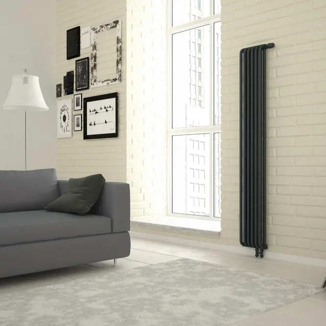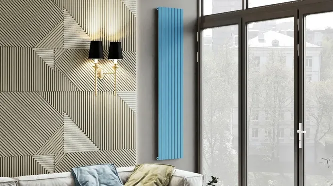 Кстати, радиаторы не обязательно ставить под окном. Если, к примеру, в квартире панорамные окна, низкие подоконники или стена занята мебелью, существуют вертикальные модели радиаторов, которые выглядят очень стильно.