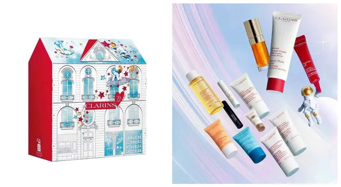 Ярким дизайном нового адвент-календаря порадовал французский бренд Clarins. Сам календарь оформлен в виде классического парижского дома — это дань уважения происхождению бренда, который в этом году отметил своё 70-летие. Хорошо просматривается и тема космоса — Clarins предлагает волшебное путешествие по планете подарков с 12 хитами из своей коллекции.