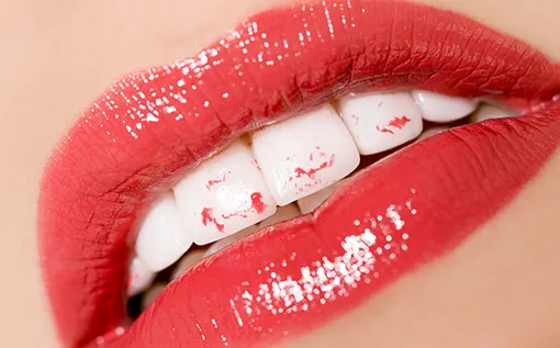 6. Отпечатки помады на зубах