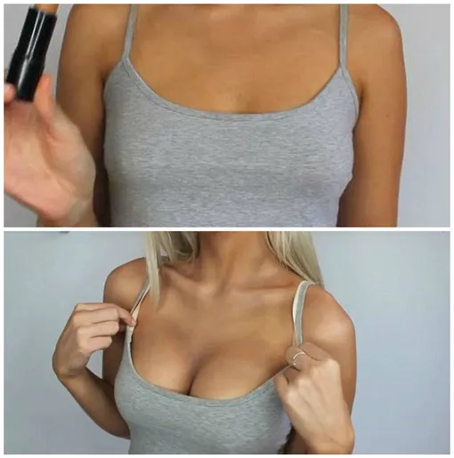 Как увеличить себе грудь — кистью для макияжа (Потрясающее видео!)