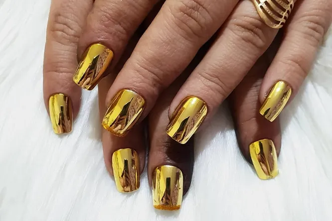 Идеальные миндалевидные пластины в хромированном золоте — квинтэссенция стиля и роскоши.