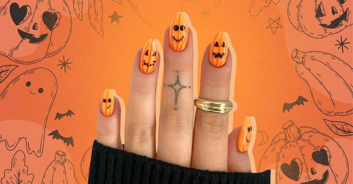 Маникюр на Хеллоуин с тыквами