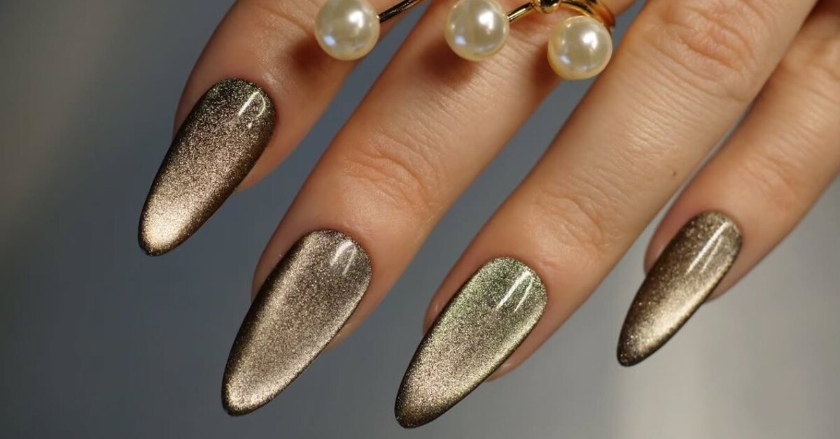 В наступающем праздничном сезоне многих покорит тренд «бархатные стеклянные ногти». Гипнотический эффект бархатного покрытия, создаваемый с помощью металлического геля «кошачий глаз», сочетается с блеском ультра-глянцевого топа, закрепляющего покрытие. «После нанесения геля "кошачий глаз" и до его полимеризации используется магнит, перемещающий магнитные частицы в геле и создающий желаемый "стеклянный" узор. Нужно подносить магнит к боковым сторонам ногтя и проводя им вверх-вниз», — рассказала порталу Real Simple звездный мастер маникюра Сара Чу.