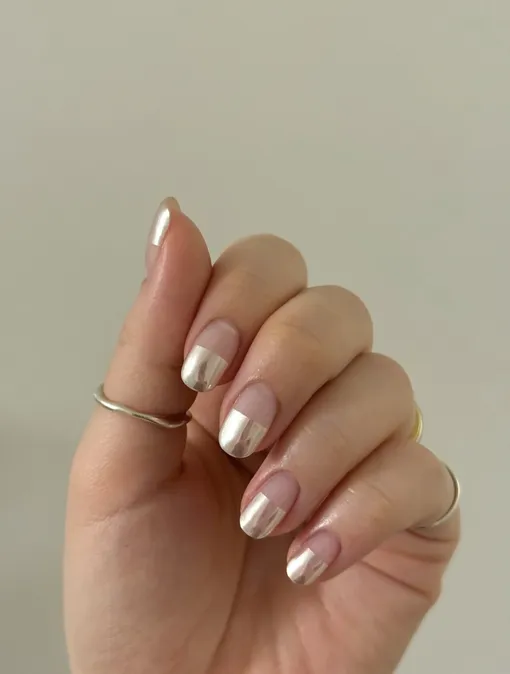 Интересно смотрится маникюр, где ногти как будто окунули в жидкий металл. Свежая идея нейл-дизайна, которая может понравиться невестам.