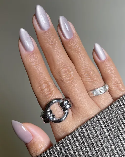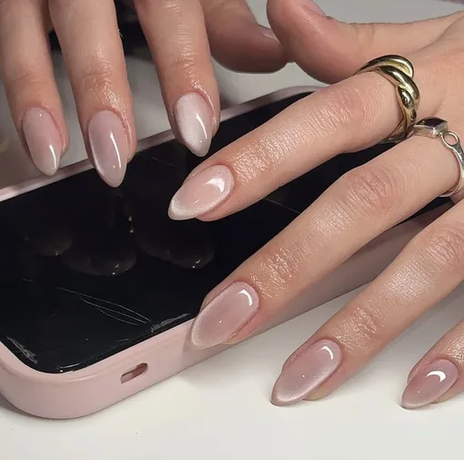 Тренд 2025, который идеально подходит для свадебного маникюра. Сияющие, переливающиеся на свету ногти дополнят образ невесты и не останутся незамеченными.