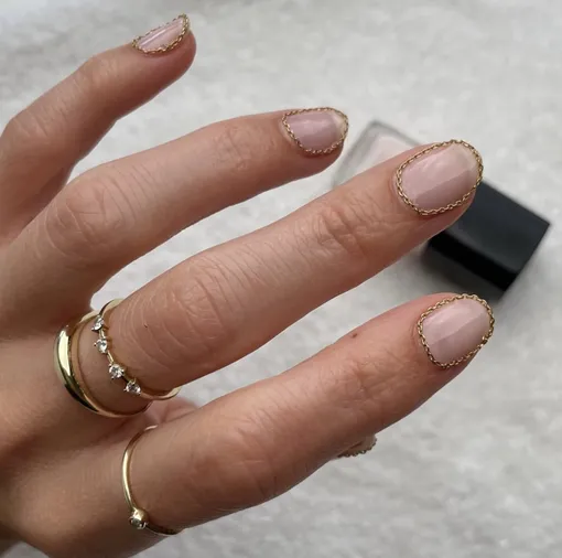 А вот на такой маникюр решатся далеко не все, и тем не менее, это свадебный тренд 2025! Цепи на ногтях стильно дополнят минималистичный или дерзкий образ невесты. Более того, такие ногти могут стать одним из главных акцентов в образе. Однако невестам, которые хотят появиться на торжестве в пышном или очень девичьем платье, такой маникюр вряд ли подойдет.