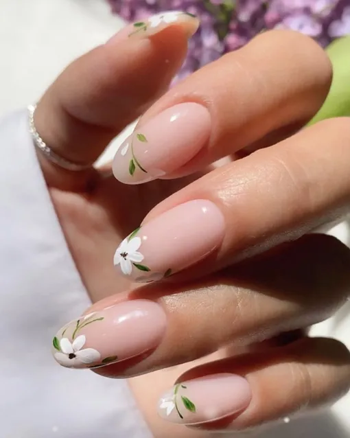 Дизайн с объемными цветами давно устарел, а вот минималистичные рисунки на пике трендов. Дополните их стразами или дорисуйте веточки, чтобы сделать маникюр более сложным и интересным.