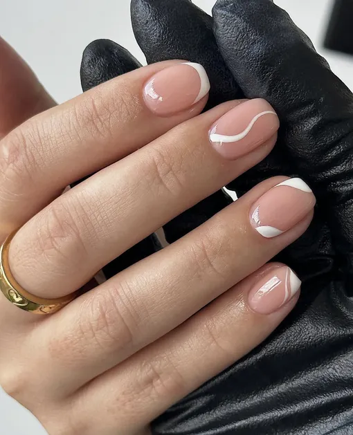 Такой маникюр отлично подойдет невестам. Если хочется экспериментов, то линию можно сделать цветной или блестящей.