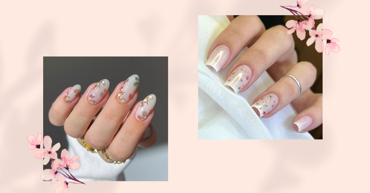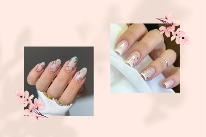 «Румяные» ногти и сухоцветы: 12 идей для трендового свадебного маникюра
