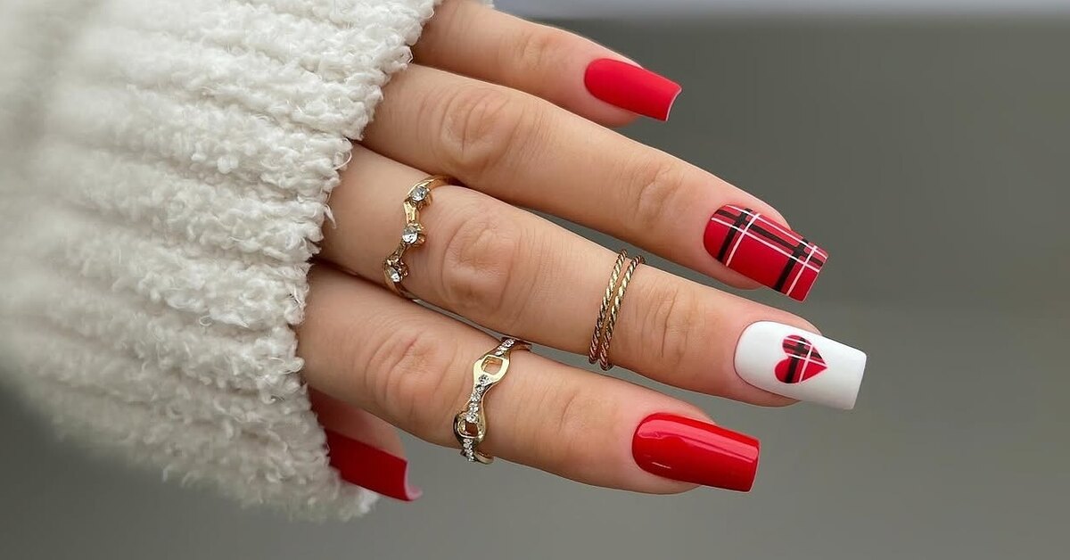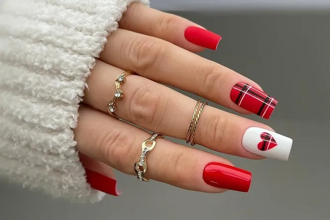 Белая основа позволяет красным деталям выделяться еще сильнее. Тонкие линии, полукруги или другие геометрические элементы создают современный минималистичный нейл-арт. Такой стиль подойдет женщинам, которые предпочитают лаконичный дизайн, но хотят добавить к празднику яркий цветовой акцент.