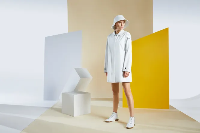 Стильная и функциональная новинка в коллекции — плащ в английском стиле с трендовой панамой в комплекте, в белом и темно-синем цветах. Достоинство этой модели не только в актуальном лаконичном дизайне, но и в технологических особенностях: система Amphibiox (патент Geox) обеспечивает климатический комфорт и надежную защиту даже от проливного дождя. Если вы забудете зонт и внезапно начнется ливень, можете не переживать: сквозь этот плащ не проникнет ни одна капля. Система Amphibiox также использована в классических куртках с поясом и капюшоном, которые представлены в коллекции в синем и красном цветах.