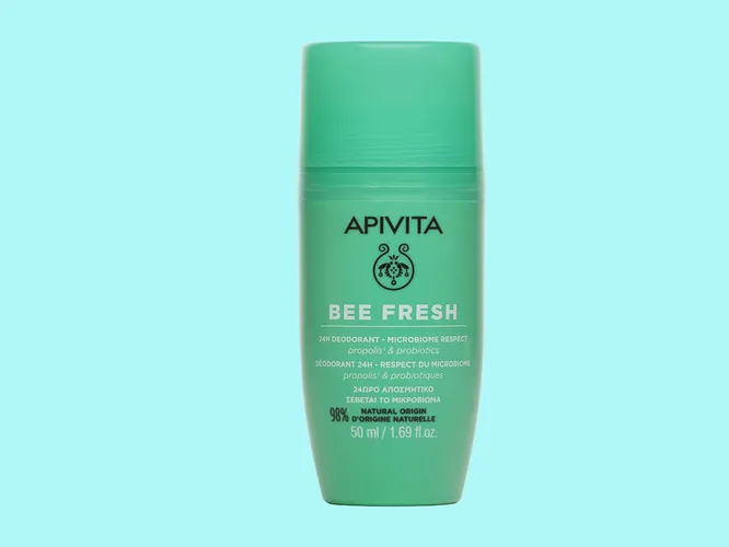 Ищите дезодорант с натуральным составом? Так вот же он! Шариковый дезодорант Apivita Bee Fresh 24h освежает и защищает от запаха пота. Составу на 98% состоит из натуральных ингредиентов (без солей алюминия и спирта) и обогащен запатентованным прополисом и пробиотиками, поэтому дезодорант подойдет тем, кто ищет натуральное, безопасное и эффективное средство.