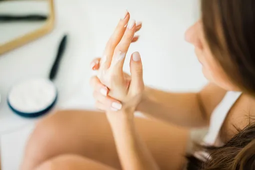 Кокосовое масло может с успехом заменить крем для рук и кутикулы. Оно избавит от сухости и шелушения, увлажнит и смягчит кожу, заживит трещинки, укрепит ногтевую пластину. Втирайте его в кутикулу, а для рук сделайте маску. Щедро смажьте кожу маслом и наденьте одноразовые полиэтиленовые перчатки, держите 10–15 минут. Для кожи стоп масло также отлично подойдет.