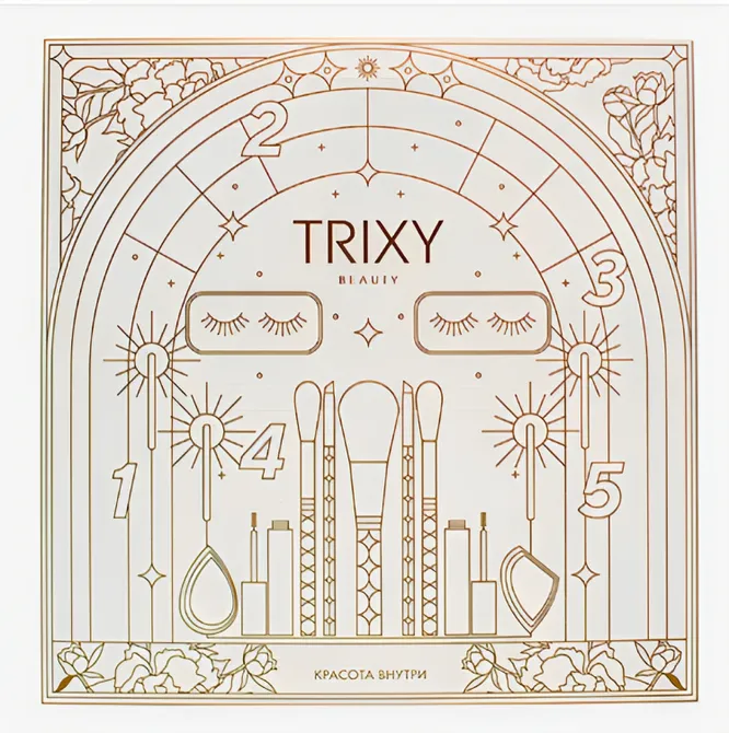 Российский бренд Trixy Beauty предложили покупательницам средства и аксессуары, которые будут очень кстати в преддверии праздников: гель для фиксации бровей, кисть и спонж для макияжа, накладные ресницы, блеск для губ. Набор небольшой, но в нём нет ничего лишнего.