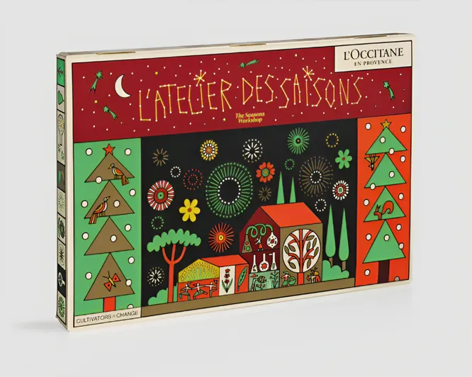 Французский бренд в этом году предложил покупателям классический адвент-календарь из 23 бестселлеров по уходу за волосами, кожей рук, лица и тела. Объёмы вполне приличные — некоторых средств хватит на месяцы постоянного использования. Приятный бонус — расчёска из натурального дерева.