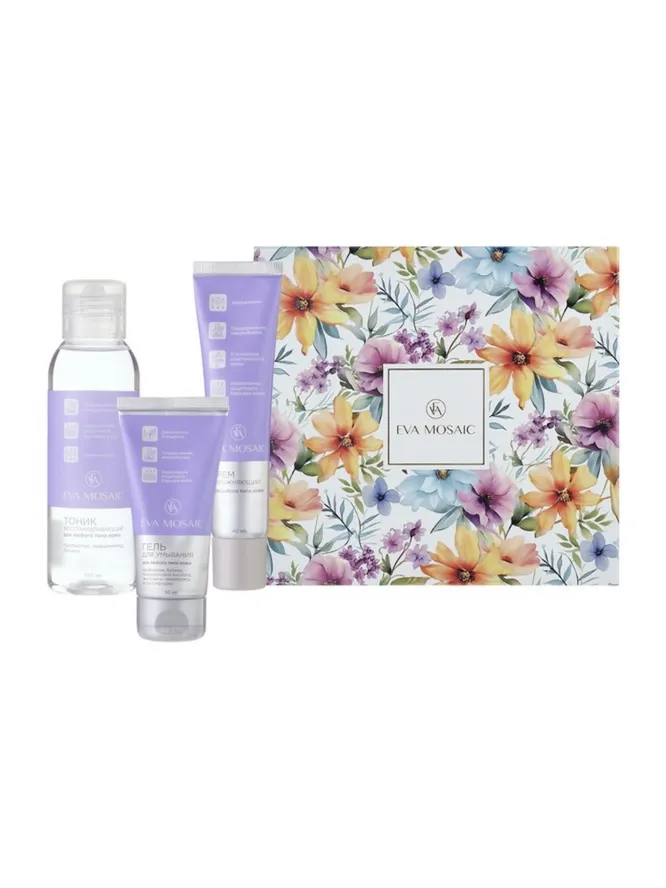 В набор для ухода за кожей лица входят гель для умывания, который деликатно очищает от загрязнений, бесспиртовой тоник c пребиотиком с тонизирующим эффектом и легкий увлажняющий крем с пребиотиками.