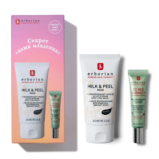 Этот набор — отличное комбо для ухода за кожей. Разглаживающая маска-пилинг «Кунжутное молоко» деликатно отшелушивает кожу, делая ее чистой, сияющей и напитанной, и выравнивает цвет лица. Корректирующий крем для лица CC RED имеет успокаивающий экстракт Центеллы Азиатской, которая борется с несовершенствами кожи. В составе средства есть зеленые CC-пигменты, которые улучшают цвет лица и выравнивают тон, эффективно перекрывая красноту.