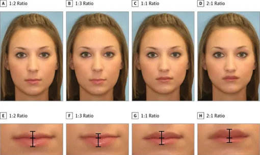 Итак, в феврале 2017 исследователи Калифорнийского Университета в Ирвине провели тестирование. Мужчинам предложили оценить каждую отфотошопленную фотографию женских губ на привлекательность. Оценки выставлялись от «1» до «10», и десятка была наивысшим баллом. Сначала смотрели, насколько пухлыми должны быть губы, какую площадь они должны занимать на лице.
