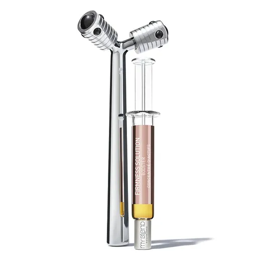 База здесь одна – универсальная. Она содержит воду, насыщенную фитонутриентами из растительных источников, выращенных на собственных сертифицированных органических фермах: вишни ацеролы, черной смородины, зеленого чая, граната и шпината. В ней смешиваются подходящие вашей коже концентраты.