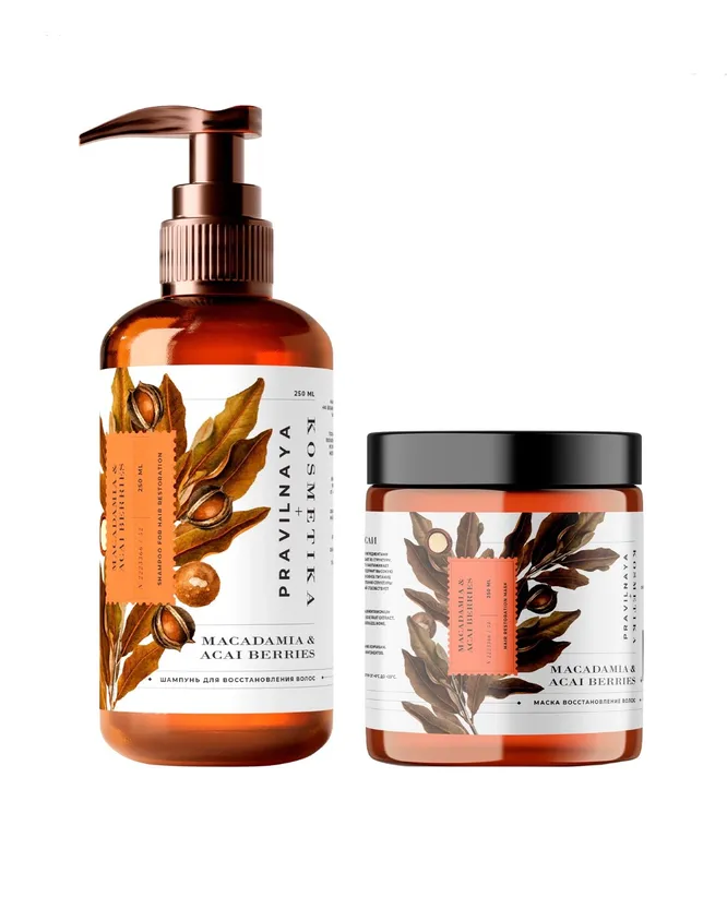Набор восстановление волос Макадамия и ягоды асаи (шампунь + маска) Pravilnaya Kosmetika