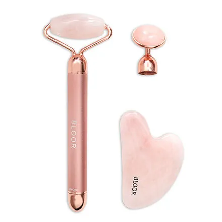 Роллер в этом наборе оснащён механизмом вибрации для дополнительной стимуляции кровообращения в клетках кожи. Скребок и роллер сделаны из 100% розового кварца, в наборе есть удобная сумочка для хранения.
