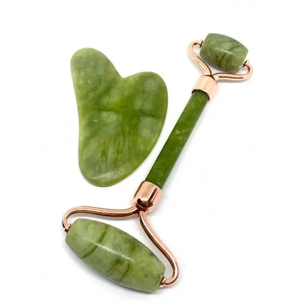 Набор: роллер и скребок гуаша в форме сердца с двумя округлыми выступами с одного края. Имеет хорошую теплоёмкость, то есть быстро нагревается при контакте с кожей, прогревая мышцы и сосуды лица. Скребок в форме сердца можно использовать не только для лица, но и для массажа болезненных участков тела, например после занятий спортом или других физических нагрузок.