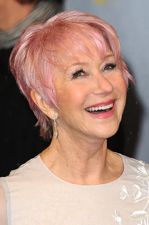 Хелен Миррен выглядит потрясающе в свои 72 года, и самое классное — актриса не боится экспериментировать с внешностью. Например, недавно женщина покрасила короткую стрижку пикси в розовый — смело, не так ли? Сравни со временем, когда звезда ходила с бобом. Сейчас она выглядит лучше, да?