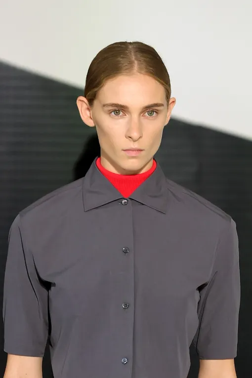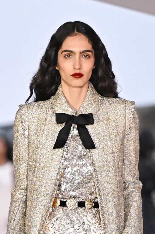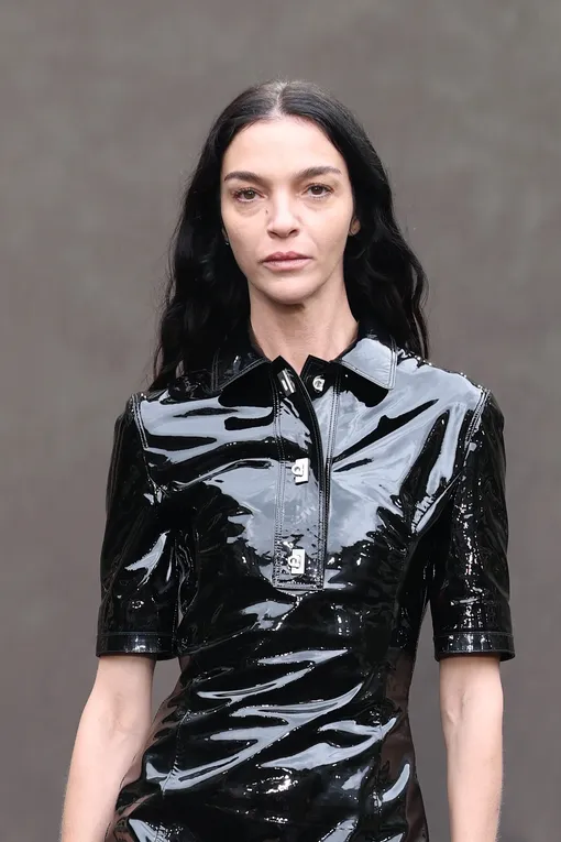 Гладкие укладки снова на пике популярности — но в обновленной версии: без ощущения слишком строгого образа. Такой стиль мы видели у моделей на показах Helmut Lang, Ferragamo и Hermès. Настоящий глянцевый минимализм: волосы блестят и выглядят ухоженными, словно покрыты невесомым лаком, при этом сохраняется легкий объем у корней. Такая укладка подходит к лаконичным вечерним костюмам или платьям прямого кроя.