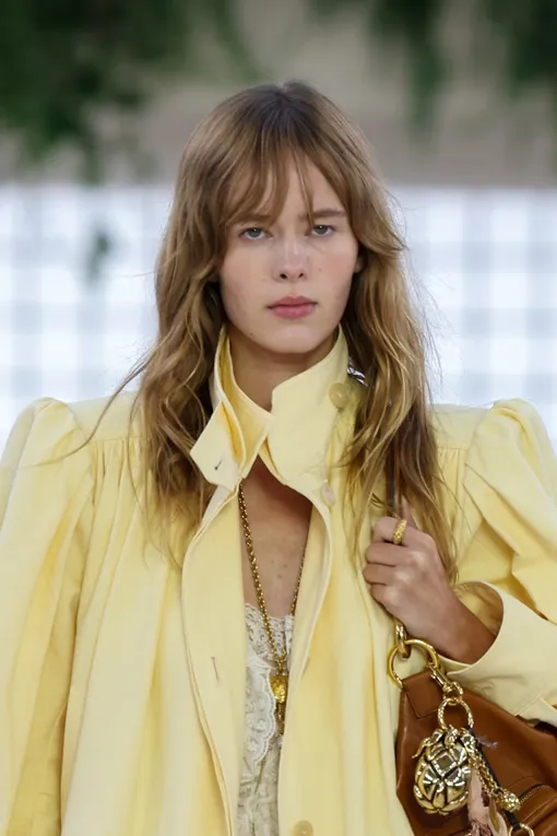 Не пляжные, не голливудские, а именно мягкие, «воздушные» волны — новый фаворит стилистов. Такой эффект появлялся на подиумах Chloé и Bally: волосы будто сами слегка оформляются в движении.