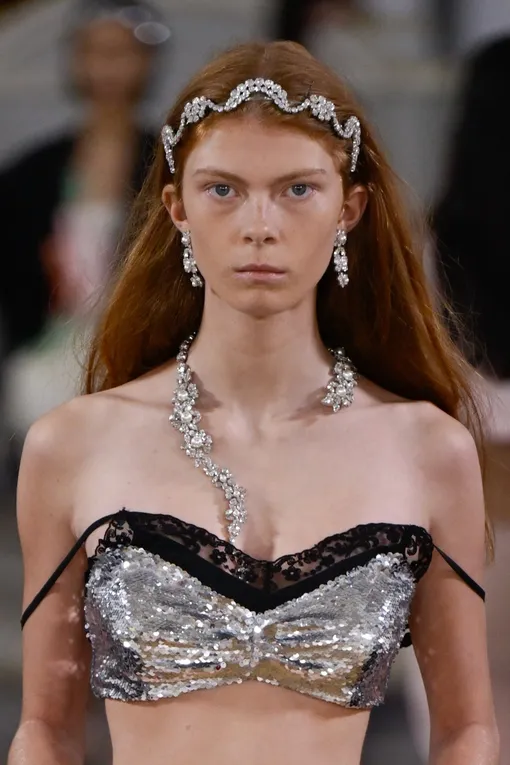 Подиумы снова сделали украшения для волос полноценным элементом вечернего образа. Beaded clips у Simone Rocha, металлические элементы у Paco Rabanne — всё это официально вернулось в моду.