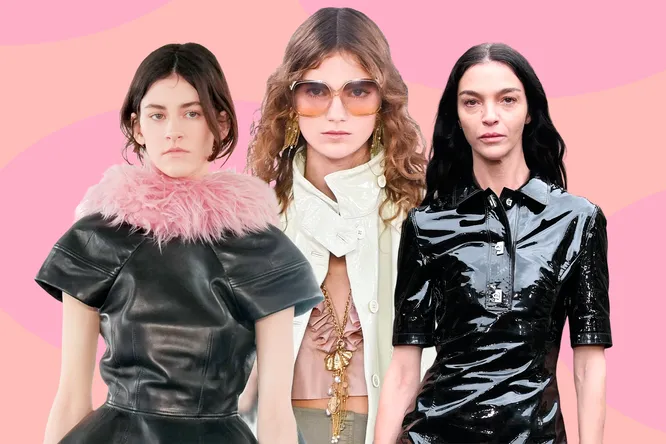 Гладкие укладки снова на пике популярности — но в обновленной версии: без ощущения слишком строгого образа. Такой стиль мы видели у моделей на показах Helmut Lang, Ferragamo и Hermès. Настоящий глянцевый минимализм: волосы блестят и выглядят ухоженными, словно покрыты невесомым лаком, при этом сохраняется легкий объем у корней. Такая укладка подходит к лаконичным вечерним костюмам или платьям прямого кроя.