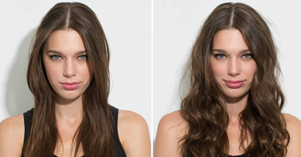Сейчас ваши локоны выглядят слишком гладкими. Чтобы придать им естественность, запустите пальцы в прическу до самых корней и расчешите пятерней. Не пугайтесь, что волосы могут выглядеть немного неряшливо, это гораздо эффектнее, чем залакированные жесткие пряди.