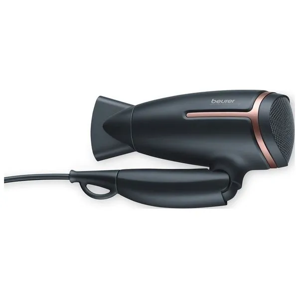 Небольшой и удобный фен с двумя режимами воздушного потока и функцией ионизации воздуха. Несмотря на компактные размеры, волосы сушит быстро и бережно, а складная ручка удобна для хранения в небольших пространствах. Есть узкая насадка, функция обдува холодным воздухом и защита от перегрева. Фен очень легкий, так что подойдет для поездок.
