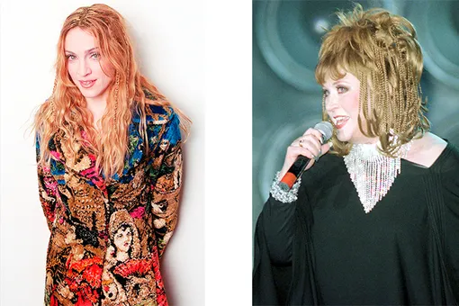 Типичную прическу Аллы Борисовны — пышную гриву, прошедшую химическую завивку, — можно встретить в одном из первых этапов бьюти-эволюции Мадонны. Длина по плечи, подведенные темным глаза, а главное, уверенный взгляд в камеру, — и сходство становится очевидным, несмотря на разницу в возрасте. Еще раз впомним «восьмидесятые»!
