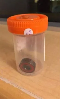 После операции врачи извлекли эту деталь из ребенка. Подшипник перекрыл надгортанник и мальчик не мог нормально дышать.