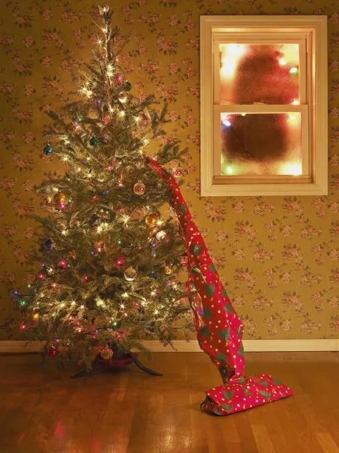 Его цвет вам не идет, ткань колется, а фасон полнит? Хорошая новость: уродливый свитер легко превращается в оригинальную «юбку» для новогодней елки, как на этом снимке. Осталось научиться вязать крючком или найти рукодельницу в помощь.