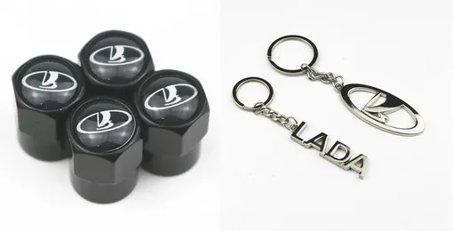 Стильный брелок с надписью Lada или логотипом в виде легендарной ладьи украсит связку ключей обладателя машины этой марки. Изготовлен из нержавеющей стали и стоит меньше ста рублей. Дизайн самого автомобиля также подчеркнут колпачки на ниппель с фирменным значком.