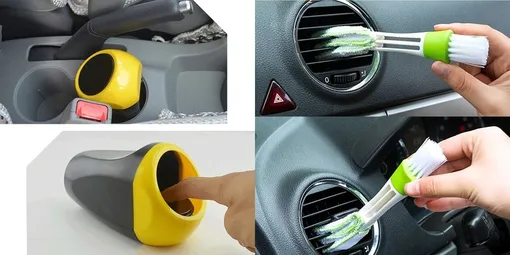 Чтобы не копить мелкий сор в машине, пригодится компактная мусорная корзина для установки в подстаканник. Теперь не придется распихивать бычки и сопливые салфетки по карманам, подлокотникам и пакетикам. А в очистке щелей между деталями отделки салона или воздуховодов окажется незаменима щетка хитрой формы. Если до этого ни разу не очищали дефлекторы, щеток рекомендуем взять несколько — после первой же чистки отмыть ее будет невозможно.