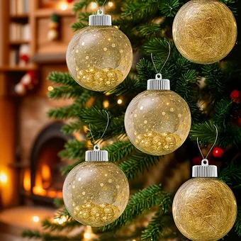 Лунная тема в новогоднем декоре 2025-2026 года более чем актуальна. В прозрачные елочные шары насыпают блёстки, помещают кристаллы, серебряные нити и гирлянды. Всё для того, чтобы ваша ель сверкала ярче ночного светила.