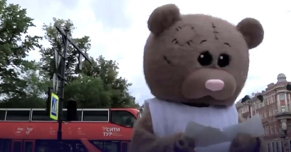 Целый август 11-летний мальчик в виде плюшевого мишки выходил в центр Санкт-Петербурга, чтобы помочь спасти своего младшего брата. Когда в сентябре началась учеба, школьника стали привозить в город по выходным. Артем отмечает, что люди очень позитивно реагируют на его образ и что у мишки они охотнее берут листовки, чем у человека без костюма.