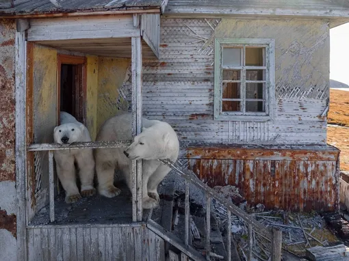 Подобные кадры уже становились сенсацией: в 2021 году фотограф Дмитрий Кох также снял семью белых медведей в тех же развалинах полярной базы. Тогда снимки облетели мировые медиа и принесли автору престижные награды. Сам Дмитрий Кох позже рассказывал, что ощущение было «сюрреалистичным» — животные выглядывали из окон полуразрушенных домов, словно новые жильцы, занявшие покинутые людьми строения.