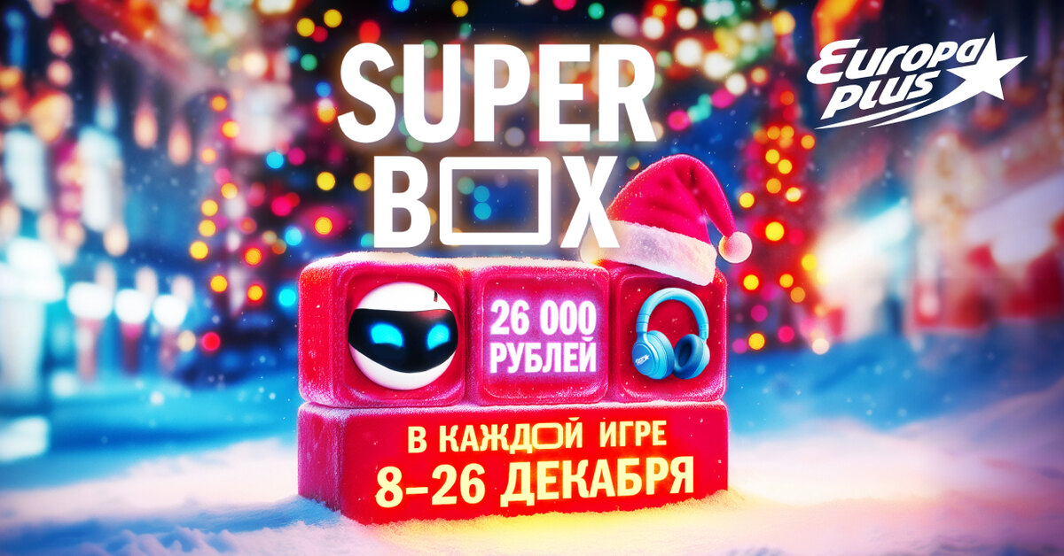 Зима только началась, а «Европа Плюс» уже готовится дарить новогоднее настроение и крутые подарки слушателям по всей стране в игре Super Box! С 8 по 26 декабря без призов не останется никто! Трижды в день по будням счастливчики будут выигрывать 26 000 рублей, крутые наушники или робота-помощника, который может и с любимым питомцем поиграть, и в домашних делах помочь.