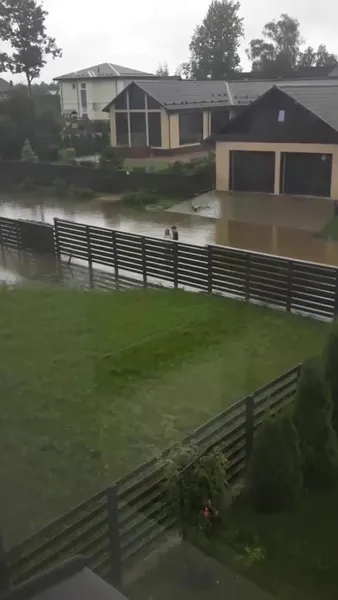 Сильный ливень сделал подмосковный посёлок Гринфилд практически курортным — из окон элитных коттеджей теперь отрывается вид на «коричневое море».