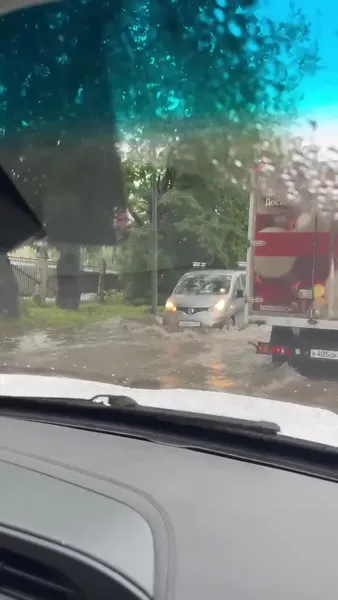 Кроме чертановских водопадов, который мы показывали в предыдущей подборке, подобный образовался из-за мощного ливня на улице Трофимова, так что парковаться и ходить там настоятельно не рекомендуется.