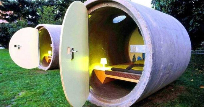 Такой дом строится из недорогих и легкодоступных бетонных водопроводных труб диаметром 2,5 м и подходит для проживания или двух человек. Помещение полностью оборудовано — там есть кухня, ванная комната и вся необходимая компактная мебель, также есть доступ в Интернет. Удобство таких домов в том, что за короткое время их можно собрать в невысокое здание или же переместить другое место в городе.