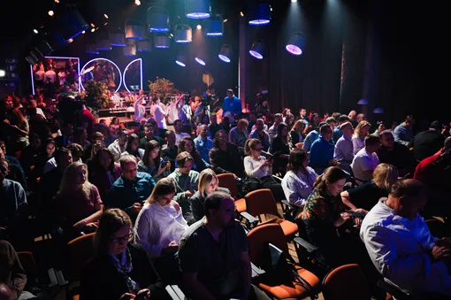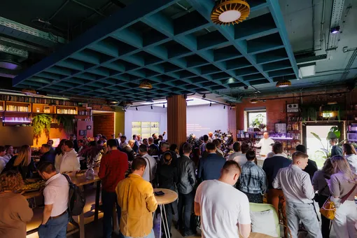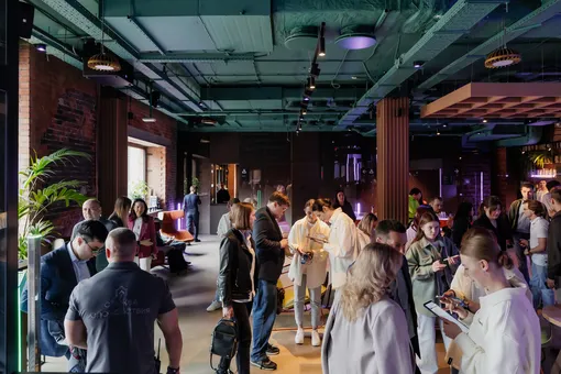 После мастер-класса гостей собрали в большой гостиной с книжными полками от пола до потолка. Первыми выступили генеральный директор YADRO Алексей Шелобков и директор по технологиям Артём Икоев. Они рассказали об истории и основных направлениях деятельности технологической компании (входит в «ИКС Холдинг») — одном из крупнейших в России производителе систем хранения и обработки данных, которые собирают на заводе «Ядро Фаб Дубна».